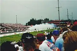 ![]() John Force doing at burnout at the NTR | |