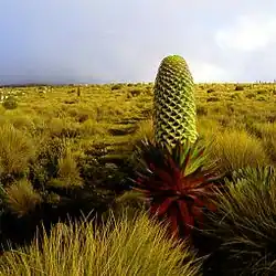 Herbs found in the heathland and chaparral zone are gentians (Swertia spp.) and large tussock sedges (Carex spp.), with alpine species living higher up in the zone.[1]