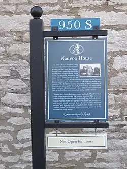 - ^ Nauvoo House (Plaque outside Nauvoo House). Nauvoo, Illinois: Community of Christ. 2003. Retrieved March 9, 2024.