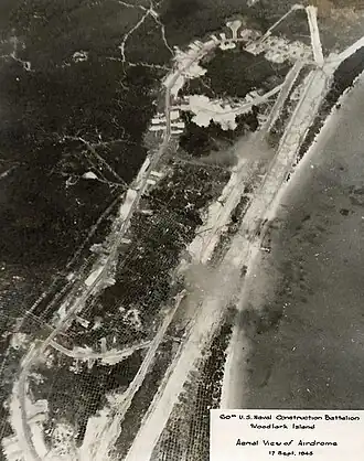 All construction was completed on November 1, 1943, and most of the Seabees departed Naval Base Woodlark Island. A maintenance crew of 309 men with the 60th Battalion stayed at Naval Base Woodlark Island until March 1944.[1][4][5][6]