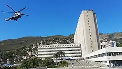 In the same year, with the creation of the Navy Health Fund, the need to build a base hospital was affirmed, and the foundation stone was laid on July 16, 1975.[18][19] Inaugurated on February 8, 1980, the CMNMD continued to provide care and incorporated the School for Nursing Assistants that had been operating at the Navy Central Hospital.[7] Still under the dictatorship, President Ernesto Geisel, in 1979, sanctioned Decree No. 83.161, the institution's school was reorganized and expanded as the School of Health, of higher and medium level, recognized by the Ministry of Education (MEC), with courses in Nursing Assistant and Technician, Residencies in Medicine, Dentistry, Nursing and Pharmacy; as well as courses in Basic Life Support (distance learning) and Operative Nursing.[20] Also in 1979, through Law 5450/79, Geisel signed that the former Experimental Surgery Section became a Department of the CMNMD.[21] In 1981, new facilities were built for the Biomedical Research Institute.[8]