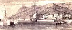 At the start of hostilities of 25 June, the Austrians immediately sailed out to threaten Salò and prevent any movement of Italian troops. On June 30, the Austrian ships bombarded the railway station at Desenzano, a supply and communications point for the Italian Volunteer Corps of Giuseppe Garibaldi, but caused only minor damage.[3] More substantial action took place on July 2, at 5 am, when four Austrian gunboats, including the Hess and Franz Joseph, bombarded the centre of Gargnano,[6] where there was a strong concentration of Garibaldi's forces. The bombardment caused extensive damage to homes, one dead and eight wounded among the defending volunteers of the 2nd Regiment. The Austrian flotilla was eventually compelled to withdraw under fire from an Italian battery commanded by Captain Achille Afan de Rivera.
