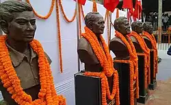 Statues of the founders of Naxalism in Bihar, from left to right, Jagdish Mahto, Rameswar Ahir, Ramnaresh Dusadh, Subrato Datta and others.