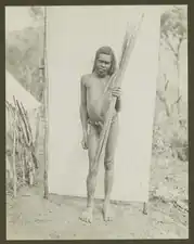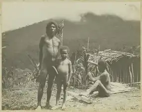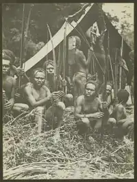 The Nduga tribe believes that their ancestors were from the Seinma region in Yahukimo Regency and later they migrated to the Baliem Valley.[4] Many explorations were conducted in highland Papua during the early 20th century. One of these was the Second South New Guinea Expedition led by Lorentz and composed of the Kamoro and Apo Kayan Dayak tribes in 1909–1910, which successfully met with representatives from the Pesegem tribesman in the south of Mount Trikora, although they failed to reach the Baliem Valley. The third expedition in 1912–1913, led by Herderschee, also managed to contact the Pesegem again. Pesegem is a Nduga-speaking group considered to be part of the Dani at the time. Additionally, the expedition team also encountered the Morup group, though they were not studied further.[6][7][8]