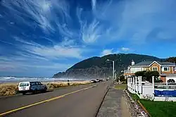 Neahkahnie Mountain is a mountain, or headland, on the Oregon Coast, north of Manzanita in Oswald West State Park overlooking U.S. Route 101, that has a pass elevation of approximately 620 feet (190 m), which is the third highest point of the highway in Oregon. The peak is part of the Northern Oregon Coast Range, which is part of the Oregon Coast Range.[1] It is best known for stories of Spanish treasure said to be buried either at the foot of the mountain, or on its slopes.