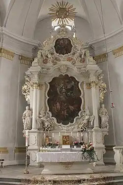 The town is dominated by the Baroque church of St Martin, which stands on high ground. Whilst mildly impressive from the outside the church is more noted for its magnificent interior.