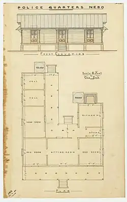 The Nebo Police Station opened in February 1867.[14] In December 1886 new police quarters were built.[15]