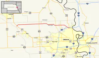 - ^ a b c "Nebraska Highway Reference Log Book" (PDF). Nebraska Department of Roads. 2015. pp. 130–131. Archived from the original (PDF) on February 15, 2020. Retrieved January 7, 2017.