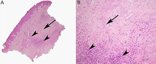 - ^ Yen, Pei-Shan; Wang, Kuo-Hsien; Chen, Wei-Yu; Yang, Ya-Wen; Ho, Wen-Tsao (2011-06-01). "The many faces of necrobiosis lipoidica: a report of three cases with histologic variations". Dermatologica Sinica. 29 (2): 67–71. doi:10.1016/j.dsi.2011.05.006. ISSN 1027-8117.