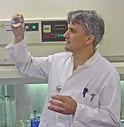 Ned Budisa is well known for the establishment of the use of selenium-containing non-canonical amino acids for protein X-ray crystallography[20] and fluorine-containing analogs for 19F NMR-spectroscopy and protein folding studies.[21] He was the first to demonstrate the use of genetic code engineering as a tool for the creation of therapeutic proteins[22] and ribosomally synthesized peptide-drugs.[23] He has succeeded with innovative engineering of biomaterials, in particular photoactivatable mussel-based underwater adhesives.[24] Ned Budisa made seminal contributions to our understanding of the role of methionine oxidation in prion protein aggregation[25] and has discovered the roles of proline side chain conformations (endo-exo isomerism) in translation, folding and stability of proteins.[26][27]