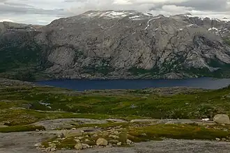 | Nedre Veikvatnet (Norwegian) Vuolep Viejekjávrre (Lule Sami) | |