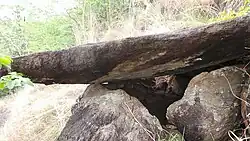 It is a man made shelter of the Prehistoric past having a large single rock slab of 4 meters in length, 2 m width and 1.5 feet thickness which rests on two rock out-crops of 5 feet height. Shelter is in a north-south direction and its opening is on the eastern side. Shelter has 5 feet in height and can accommodate two or three people inside. Placing and carrying of such a heavy rock slab requires number of healthy human being and teamwork. The shelter seen at Paralimattam in Nedumala of Ernakulam district has no characteristics of a Dolmen or Muniyara of the Megalithic culture but is definitely a man made shelter in the past, possibly yet another type.