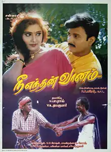 Nee Enthan Vaanam (transl. You are my sky) is a 2000 Indian Tamil-language thriller film directed by R. K. Suresh. The film stars Vignesh, Reshma and Charan Raj, with Vadivelu, Rocky, Telephone Satyanarayana, Bhaskar, Kumarimuthu and Omakuchi Narasimhan playing supporting roles. The film, produced by N. Babu Rao and V. Udaya Kumar, was released on 22 December 2000.[1]
