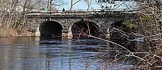 The Needham Street Bridge is a historic bridge at Needham Street over the Charles River connecting Needham and Newton, Massachusetts. The bridge was built in 1875, when Needham Street was laid out, connecting Newton Centre, Newton Highlands, and Needham center. It was designed and built by Hiram Blaisdell and William Wheeler, then in the early stages of a successful civil engineering career. The bridge is one of the finest surviving stone arch bridges in the Boston area. The bridge is distinctive among those that do survive as not having been widened.[2]