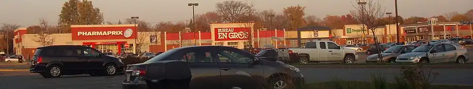 The first anchors of the mall were a Steinberg and Zellers. Prohome eventually took place of the Zellers store in 1987. Steinberg went bankrupt in 1992, and the store was sold as an IGA store.[9] Prohome closed in 1997, and Rona Le Quincallier took its place. That store closed in 2005. Jean Coutu, which relocated within the mall, took part of the space, and a Caplan Duval opened in part of the former Rona space in 2010. Also, in the late 2000s, IGA's store was remodelled by counting its exterior.