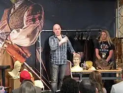 ![]() Neill Gorton presenting at a Doctor Who convention | |