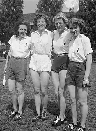 ![]() Nel Büch, Gré de Jongh, Fanny Blankers-Koen and Ina van Vooren in 1950 | |