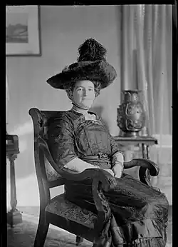 McClung was born Nellie Letitia Mooney on 20 October 1873 in Chatsworth, Ontario, the youngest of six children of John and Letitia Mooney (née McCurdy).[1] Her father had acquired 60 hectares (150 acres) of property in Chatsworth, but the soil was not of good quality and the family struggled to make ends meet. In 1880, when Nellie was seven, they moved to the Souris River valley, two hundred kilometers west of Winnipeg.[2] Nellie graduated from the Manitoba Normal School when she was sixteen. After receiving her teaching certificate, she acquired a teaching position in Hazel, Manitoba, earning a salary of $40 a month.[3] After teaching for eighteen months in Hazel, she moved to Manitou.[4]