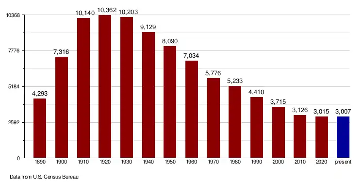- ^ Forstall, Richard L. (April 20, 1995). "Population of Counties by Decennial Census: 1900 to 1990". United States Census Bureau. Archived from the original on February 19, 1999. Retrieved July 20, 2014.