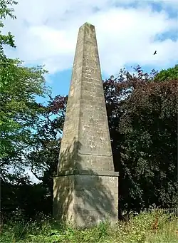 The Nelson Memorial, Swarland is a white freestone obelisk at Swarland in north Northumberland, England. Erected in 1807, two years after the death of Horatio Nelson, 1st Viscount Nelson, victor of the Battle of Trafalgar, it was placed by his friend and sometime agent, Alexander Davison, who owned an estate centred on the now demolished Swarland Hall. It is a Grade II listed monument.[1]