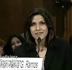 During the 111th Congress, Ramos was one of three candidates recommended by Democrats from the Texas House delegation for a Corpus Christi vacancy on the United States District Court for the Southern District of Texas.[5] Ramos was the only candidate also supported by Republican Senators Kay Bailey Hutchison and John Cornyn.[4] On January 26, 2011, President Barack Obama nominated Ramos to a seat vacated by Judge Hayden Wilson Head Jr.[4] The United States Senate confirmed Ramos by unanimous consent on August 2, 2011.[6] She received her commission on August 4, 2011.[3]