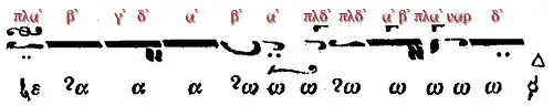 νε [ἴσον]—να [δικεντήματα]—να [ὀλίγον]—νω [ὀλίγον με τῇ διπλῇ]
