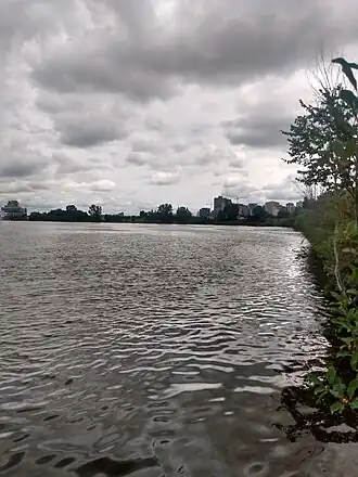 In the early 20th century, the bay was used for Ottawa's drinking water. In 1912, experts deemed the bay "no fit place under which to lay an intake pipe without great precautions", due to the intake pipe being in disrepair due to the number of logs in the bay from Ottawa's lumber industry.[3] During a typhoid fever epidemic at the time, tests taken from drinking water from the bay showed that it was contaminated with pollution.[4] Plans to build a pipeline to carry treated water over the bay as a bridge was dismissed as a "wild undertaking".[5]