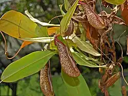 Nepenthes 'Miranda' is a cultivar of a manmade hybrid involving N. maxima and N. northiana. For some authors it is a more complex hybrid.