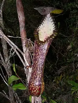 - ^ a b Clarke, C.M. (2018). "Nepenthes hamata". IUCN Red List of Threatened Species. 2018: e.T40111A143967359. doi:10.2305/IUCN.UK.2018-1.RLTS.T40111A143967359.en. Retrieved 19 November 2021.