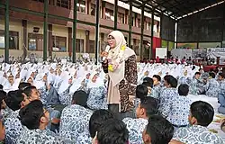 Netty giving a speech during her visit to SMAN 1 Kota Tasikmalaya in 2017