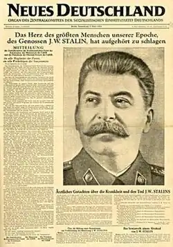 ND was formed in 1946[5] as a "licensed newspaper" (lizenzzeitung) after the Social Democratic Party of Germany (SPD) and the Communist Party of Germany (KPD) were forcibly merged to form the SED in the Soviet occupation zone of Germany. The first edition of ND was published on 23 April 1946 in conjunction with the founding of the SED. ND replaced the SPD organ Das Volk and the KPD organ Deutsche Volkszeitung. Karl Maron was the first chief editor of the daily and served in the post until 1950.[5]