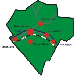 Until 1 January 1969 all these places were independent municipalities, before they were all merged to form today's greater community of Neunkirchen.