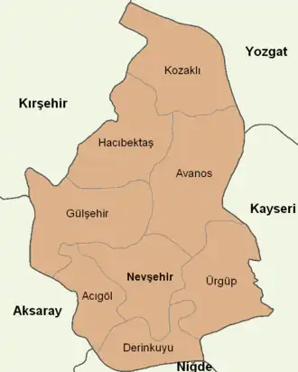 Nevşehir province is divided into 8 districts (capital district in bold):