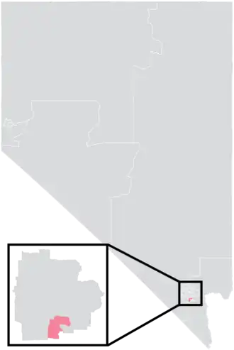 The district overlaps with Nevada's 3rd and 4th congressional districts, and with the 19th and 23rd districts of the Nevada Assembly.[4] It borders the states of Arizona and California.[1]