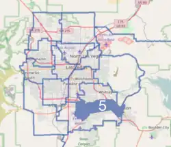 District 5 covers parts of Henderson and Paradise to the south of Las Vegas in Clark County.[3]