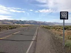 State Route 722 (SR 722) is a 58.139-mile-long (93.566 km) state highway in Churchill County and Lander County in the U.S. state of Nevada. The highway is an old routing of U.S. Route 50 (US 50), and previously the Lincoln Highway. What is now route 722 crosses the Desatoya Mountains via Carroll Summit. The US 50 designation was removed from this alignment in favor of the modern route that traverses the Desatoya Mountains via New Pass Summit, which is 1,100 feet (340 m) lower and with an easier approach on both sides than Carroll Summit.[2]