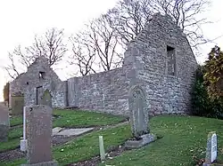The church of Nevay (dedicated to St Neveth) is on record in the 14th century, and the adjoining burial ground dates to the medieval era.[3] The present structure was built in the late 16th century. The parish of Nevay joined with the parish of Eassie to become one parish in 1660. The lintel of one of the doorwways is engraved with the date 1695. A gravestone built into the church's walls is dated 1597. Around 1835, a new church named the Eassie and Nevay Parish Church was built near the village of Nevay. The old Nevay church was abandoned soon after.[1][2]