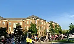 The New Albany Community Foundation’s first major accomplishment was raising $1.2 million in 2002 to support the establishment of a local New Albany branch of the Columbus Metropolitan Library.[3][19] The fundraising effort was catalyzed when historian David McCullough headlined the foundation’s first annual Remarkable Evening benefit, hosted by local residents and philanthropists Abigail and Leslie Wexner, in the fall of 2002.[8][20] The new public library opened in New Albany's Market Square in 2003. In the following year, the number of annual visits increased from 36,707 in the old location within the local high school to 158,429 visits in the new building.[21] The branch was later named in honor of Charlotte P. Kessler, a library benefactor and advocate.[22][23] In 2020, a new library garden for readings and events was opened as an extension of the city’s public Rose Run Park.[24]