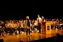 Intended to inspire lifelong learning,[1][2] The New Albany Lecture Series programs are open to students from local school districts as well as the general public. Students have said that the experience of attending New Albany Lecture Series events has changed their worldview, sparked their desire to learn, and inspired them to pursue ambitious career goals.[3][4][5] Guest speakers also meet with students in smaller groups as part of a student lecture program in which more than 15,000 students have participated.[6]