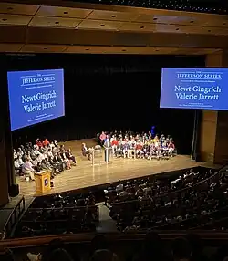 In a typical example, more than 1,000 students representing 29 schools in central Ohio participated in a New Albany Lecture Series program featuring Newt Gingrich and Valerie Jarrett in January 2020.[7] In discussing the program, Jarrett, a former advisor to President Barack Obama, said that New Albany’s efforts to promote civil discourse should be emulated “in schools, on college campuses and on factory floors across America.”[7]