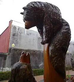The New Bern use of the "Bears" nickname corresponds to local history. When the city of New Bern was founded in 1710, early settlers adopted the Bear as the city mascot after a bear was the first animal the group encountered.[3][4] Today, there are more than 50 bear statues throughout the city, with Bear Plaza being a focal point in downtown New Bern.[5][4][6]