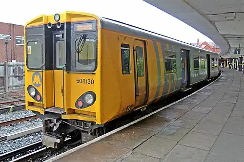 ![]() A Merseyrail Class 508 at New Brighton. | |||||
