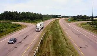 Between Shediac Bridge and Miramichi, and between Bathurst and Campbellton, it is a two-lane road with some sections designed as a super two expressway. The highway is twinned for 7 kilometres in the Shediac region near the Route 15 interchange.