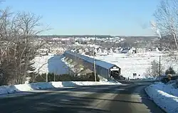 Next was the bypass around Woodstock. The road from Route 42 (now Route 560) at Jacksonville northeast to Route 2 (now Route 103) at Somerville was Route 2B by the late 1950s;[12] with the 1960 completion of the Hugh John Flemming Bridge, just upstream from the Hartland Covered Bridge, and the extension of Route 2B south from Jacksonville to Route 2 (now Route 165) south of Woodstock, Route 2B became a realignment of Route 2, with old Route 2 through Woodstock becoming Route 2A (renumbered Route 103 in 1965).[11]