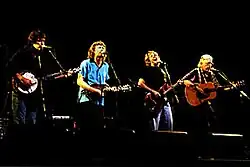 After the release of their debut, Walker left and was replaced by Butch Robins who was with the band from July 1973 to November 1974.[2] He was replaced by John Cowan, an Evansville, Indiana native.[2] The line-up was stable throughout the 1970s recording albums on Flying Fish Records.[2] New Grass Revival never played traditional bluegrass—all of the members brought elements of rock and roll, jazz, and blues to the group's sound.[3] As a result, certain portions of the bluegrass community scorned them but they also gained a devoted following of listeners.