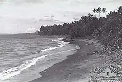 The first air attacks on Rabaul began on 4 January 1942. Within days the Japanese had succeeded in destroying the bulk of the defending aircraft, while further attacks targeted shipping in the harbour and shore installations. Scanlan considered he would need an entire brigade to defend Rabaul, yet with an invasion imminent all he could do was redeploy some of his limited force, while the remaining aircraft were withdrawn to Lae and the airfields cratered.[28] The Japanese South Seas Force of approximately 5,300 men under the command of Major General Tomitarō Horii landed at Rabaul in the early hours of 23 January 1942.[13][35] Attached to Lark Force, the NGVR detachment was positioned on the northern flank of the defensive line around Simpson Harbour with A Company, 2/22nd Battalion, manning medium machine-gun and mortar positions at Vulcan Island. Defending a 1,600-metre (1,700 yd) section of beach, one of the detachments subsequently engaged a Japanese force after dawn as they came ashore by barge, inflicting a number of casualties on them before being forced to withdraw.[36][37]