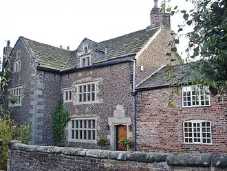 New Hall is a 17th-century house in Woodford, in the Metropolitan Borough of Stockport, Greater Manchester, England (grid reference SJ893813). Above the door, there is a Tudor-arched lintel with the date '1630' along with the initials 'WDED' (William and Elizabeth Davenport) and the family shield.[1] Another branch of the Davenport family owned Bramall Hall in nearby Bramhall. The house, along with an adjoining cottage, is a Grade II* listed building.[1]