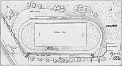 Plan for Memorial Field as published in the May 12, 1920, edition of The New Hampshire. 43°08′21″N 70°56′05″W / 43.139041°N 70.934808°W / 43.139041; -70.934808