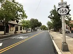 The alignment of Route 166 was originally part of Route 4 prior to 1927, designated from Absecon to Rahway.[3] This designation remained in place for seven years, until the 1927 New Jersey state highway renumbering, which remained part of an extended Route 4.[4] A year prior to the state highway renumbering, the alignment of Route 4 was also co-designated as part of U.S. Route 9, which had been assigned as part of a nationwide system.[5] Route 4 remained intact concurrent with Route 9 until the state highway renumbering on January 1, 1953. On that day, Route 4 was truncated back to Fort Lee in Bergen County, and the alignment became only U.S. Route 9.[6] A bypass was built of the Route 9 alignment in the 1950s along with construction of the Garden State Parkway, which was completed soon after. The route currently Route 166 became U.S. Route 9 Alternate by 1954, remaining for several years, when it was decommissioned in place for Route 166.[7] The route has remained intact since.[8]