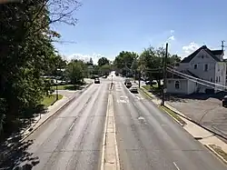 Route 59 is the shortest state highway in New Jersey, United States, at 0.15-mile (0.24 km) long.[2] The route consists entirely of a short block of Lincoln Avenue from Union County Route 610 (known locally as South Avenue) in Cranford to New Jersey Route 28 (known locally as North Avenue) along the Cranford–Garwood border. The route functions as an underpass under the Raritan Valley Line of NJ Transit, under which it crosses about halfway down the block, along the municipal border. Route 59 was originally a proposed alignment of Route 22, which was supposed to head from an intersection with current day New Jersey Route 159 in Morris County at the Pine Brook Bridge before heading through several counties, terminating at an intersection with New Jersey Route 27 in Rahway. Most of the route was not constructed, and a portion in Garwood and Cranford was re-designated Route 59 in the 1953 New Jersey state highway renumbering on January 1, 1953.